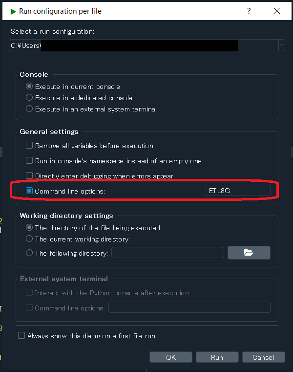 【Spyder】引数のあるスクリプトを実行する方法。